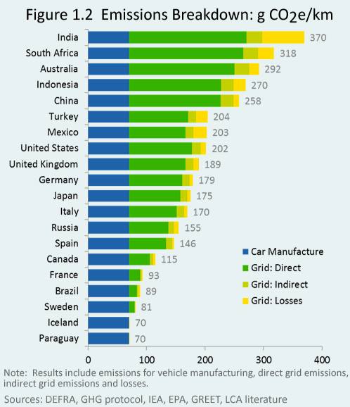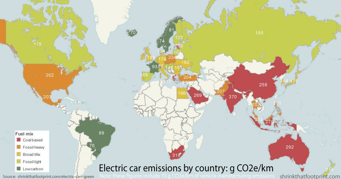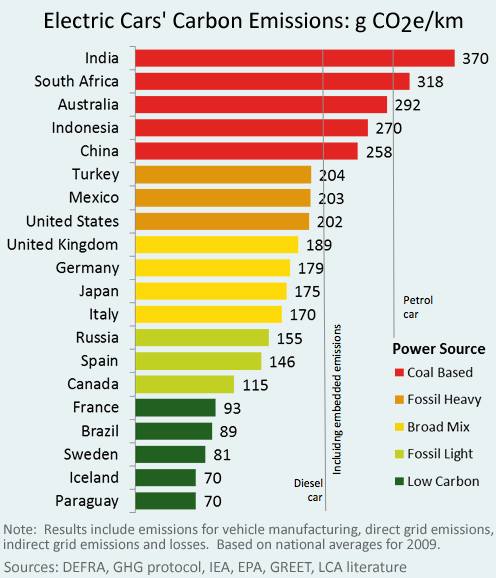 Je vous invite à lire l’excellent exposé des spécialistes/scientifiques du site Euan Mearns lesquels, avec force illustrations et analyses à l’appui, nous démontrent qu’en effet, partout où l’électricité est produite par une source thermique « polluante » (Inde, Chine, Australie, Indonésie,…), eh bien le bilan GES sera détérioré dans ces pays avec le remplacement des véhicules à essence par des véhicules électriques.
