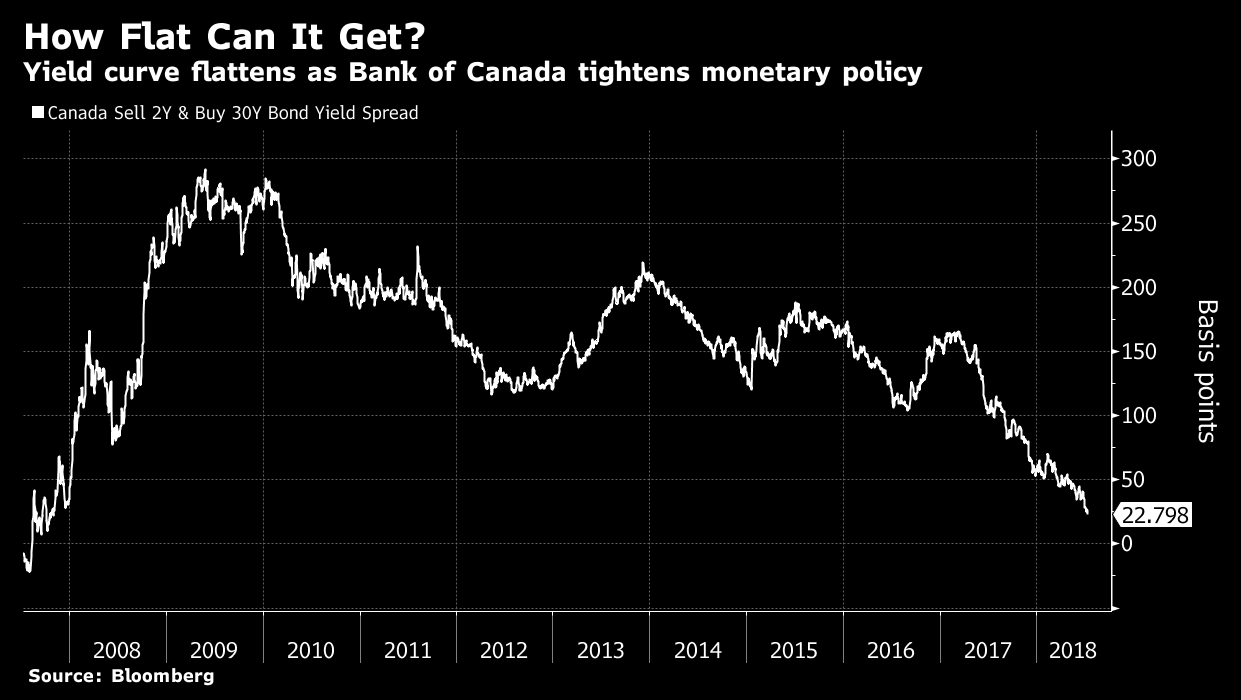 BlackRock, de loin le fond spéculatif (« Edge Fund ») le plus important au niveau mondial ( 6 300 milliards de $ US sous gestion), s’inquiète du rendement « inversé » qui se précise dans le marché obligataire canadien, les obligations à courte échéance émises par le gouvernement présentant un rendement égal – ou très voisin – au rendement sur les obligations long terme.