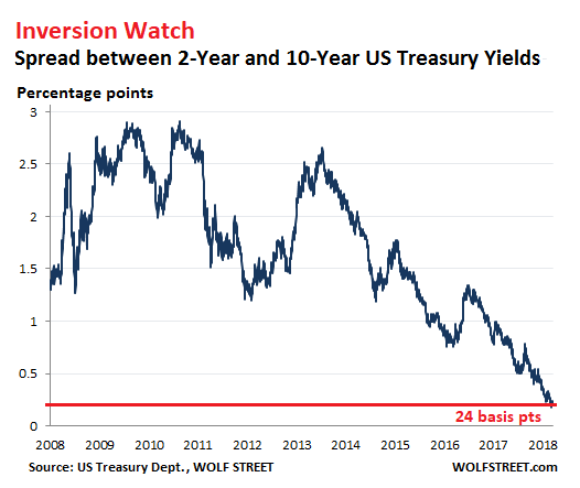 Non. Une compilation des analystes du site WolfStreet en arrive à une conclusion similaire pour les Etats-Unis: il existe un risque d’inversion dans le marché obligataire américain similaire à celui qui existe aujourd’hui dans le marché obligataire canadien:
