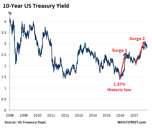C’est ainsi que l’effet combiné de la hausse des taux de base couplée à la « liquidation » des « actifs nocifs » de la FED ont propulsé les taux obligataires pour atteindre un seuil de 3% dans les mois précédents.