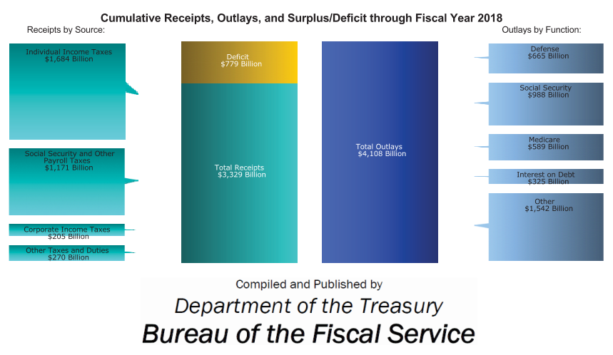 Le tableau suivant est illustratif de la situation qui prévaut au niveau des finances du gouvernement américain pour l’année financière 2018 qui vient de se clore: