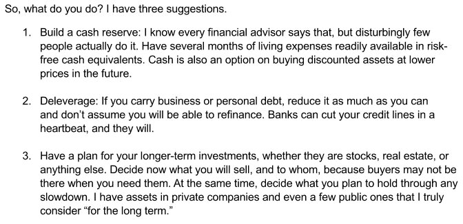 Ainsi, après les nombreuses mises en garde émises par John Mauldin dans ses chroniques récentes, il en vient à énoncer des recommandations « simples » appuyées sur du « gros bon sens »: