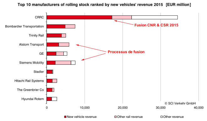 - le conglomérat chinois CRRC occupait dorénavant le 1er rang au niveau mondial, largement devant Bombardier