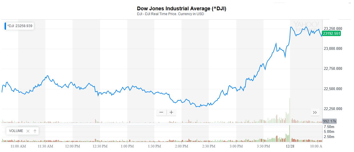 Hausse du Dow Jones entamée le 26 décembre avant la reprise « fulgurante » du 27 décembre