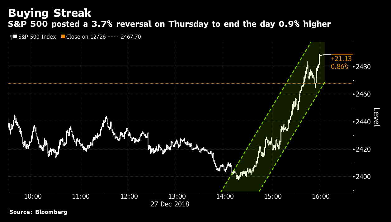 Hausse fulgurante du S&P 500 le 27 décembre 2018 entre 14h30 et 16h00